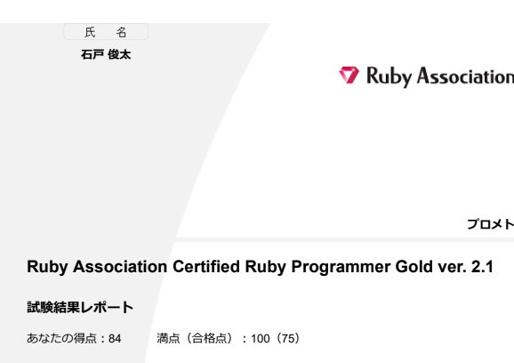 2021年11月ごろにRubyGoldの資格に挑戦しました!